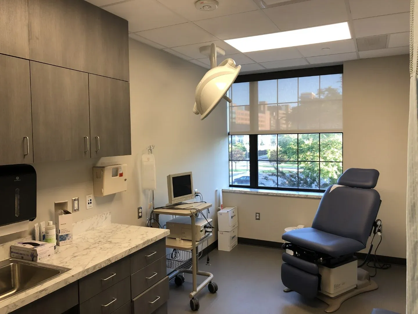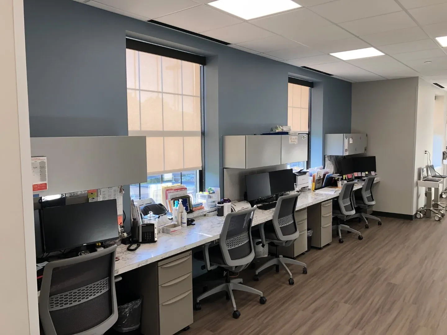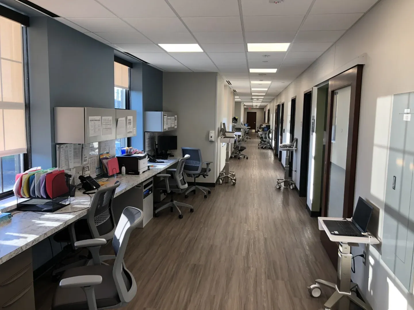 Clinic exam rooms are arranged in repeating pods to facilitate dedicated staff assignments and ongoing flexibility to expand or contract service lines. The Master Plan includes space for an Imaging suite and potential building expansion