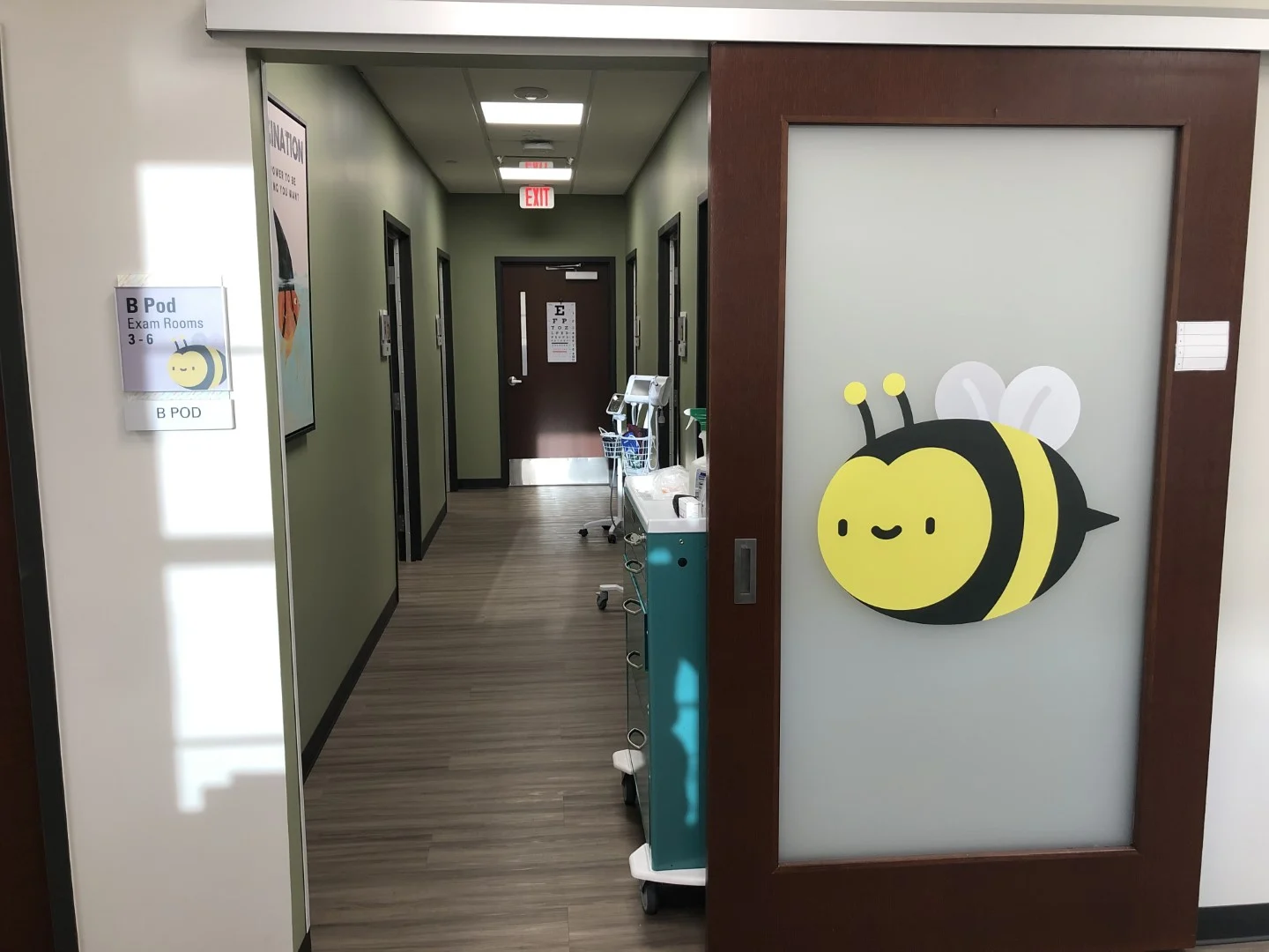 Clinic exam rooms are arranged in repeating pods to facilitate dedicated staff assignments and ongoing flexibility to expand or contract service lines. The Master Plan includes space for an Imaging suite and potential building expansion