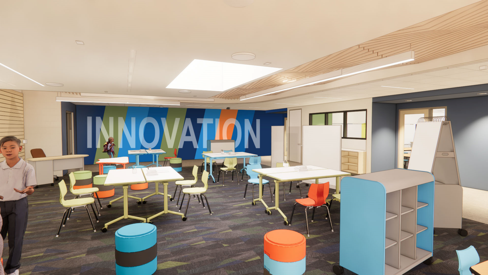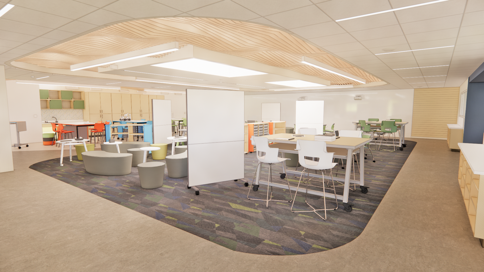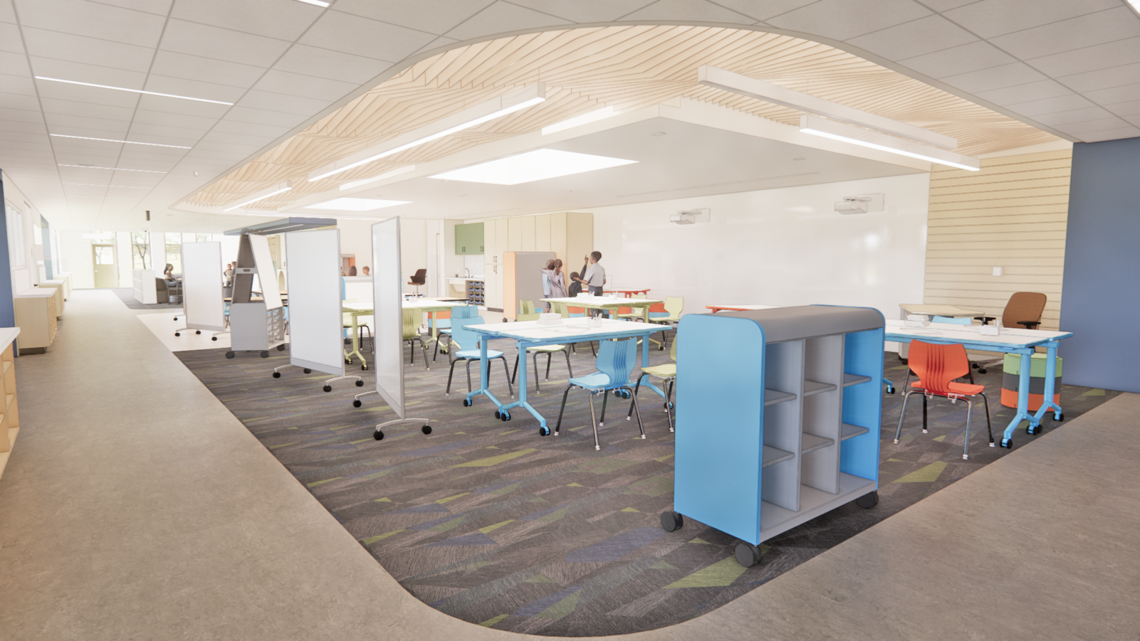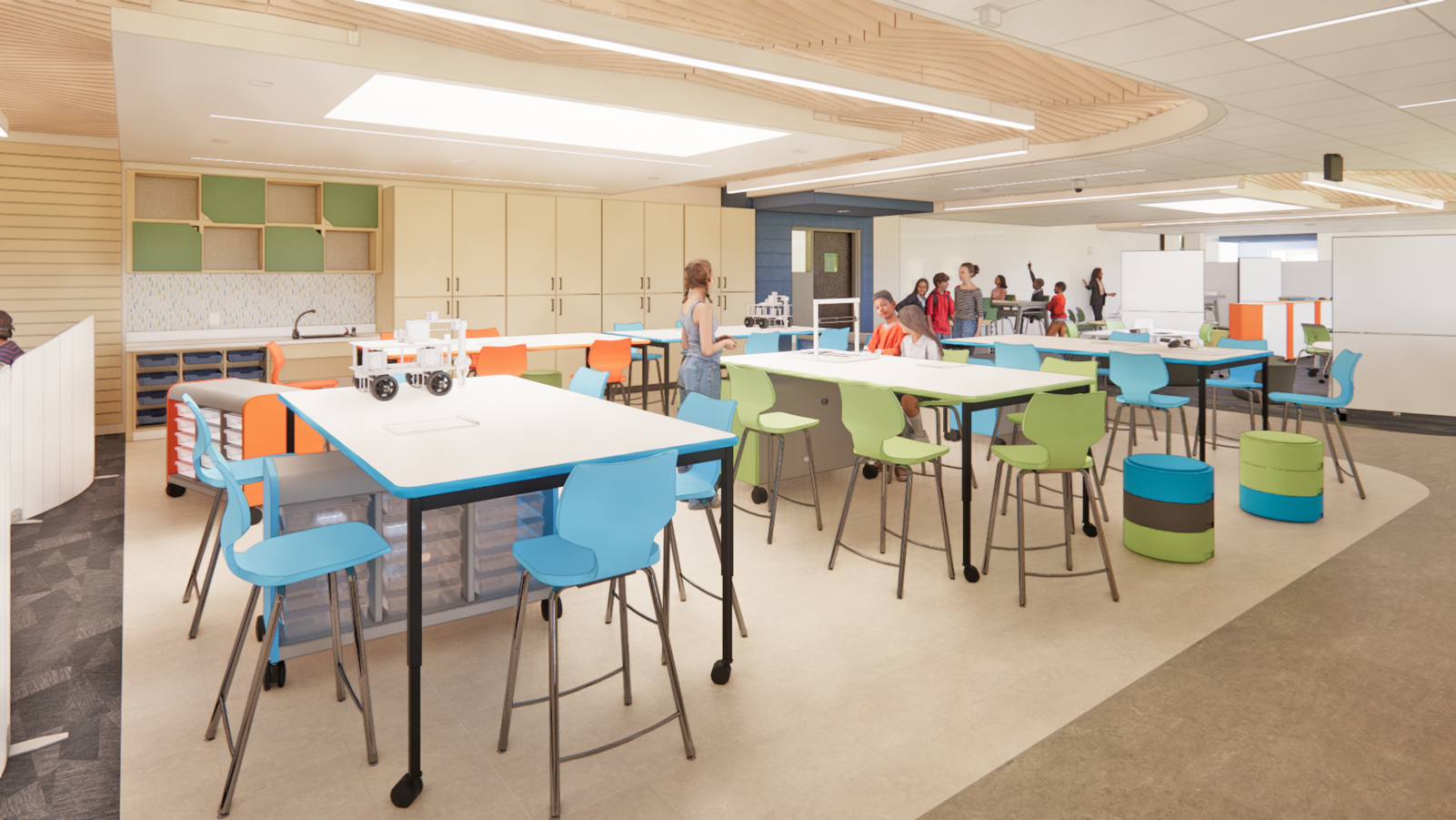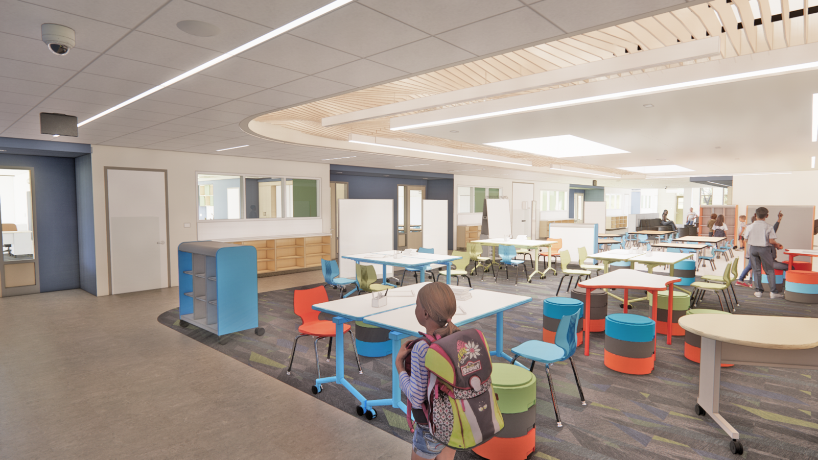 The renovation involves a significant overhaul of the original structure, retaining only the exterior shell while strategically expanding the building’s capacity within its limited site footprint. These additions enhance curb appeal, security, visibility, thermal comfort, and wayfinding. The new design fosters student engagement by shifting towards learning-centered environments that support independent study, collaboration, and large-group instruction. Central to this vision is the introduction of learning communities, organized around grade level groupings, reinforcing the district’s broader educational goals.