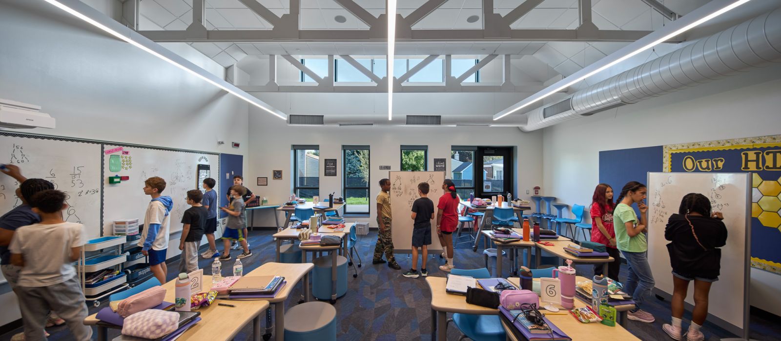 The DeKeyser Elementary School was originally designed in 1971, as an open-concept facility, lacking defined physical walls between teaching spaces. As one of several open-concept schools in the Utica Community Schools (UCS) district, it remained largely unchanged for over 50 years due to the district’s historically conservative approach to facility improvements.