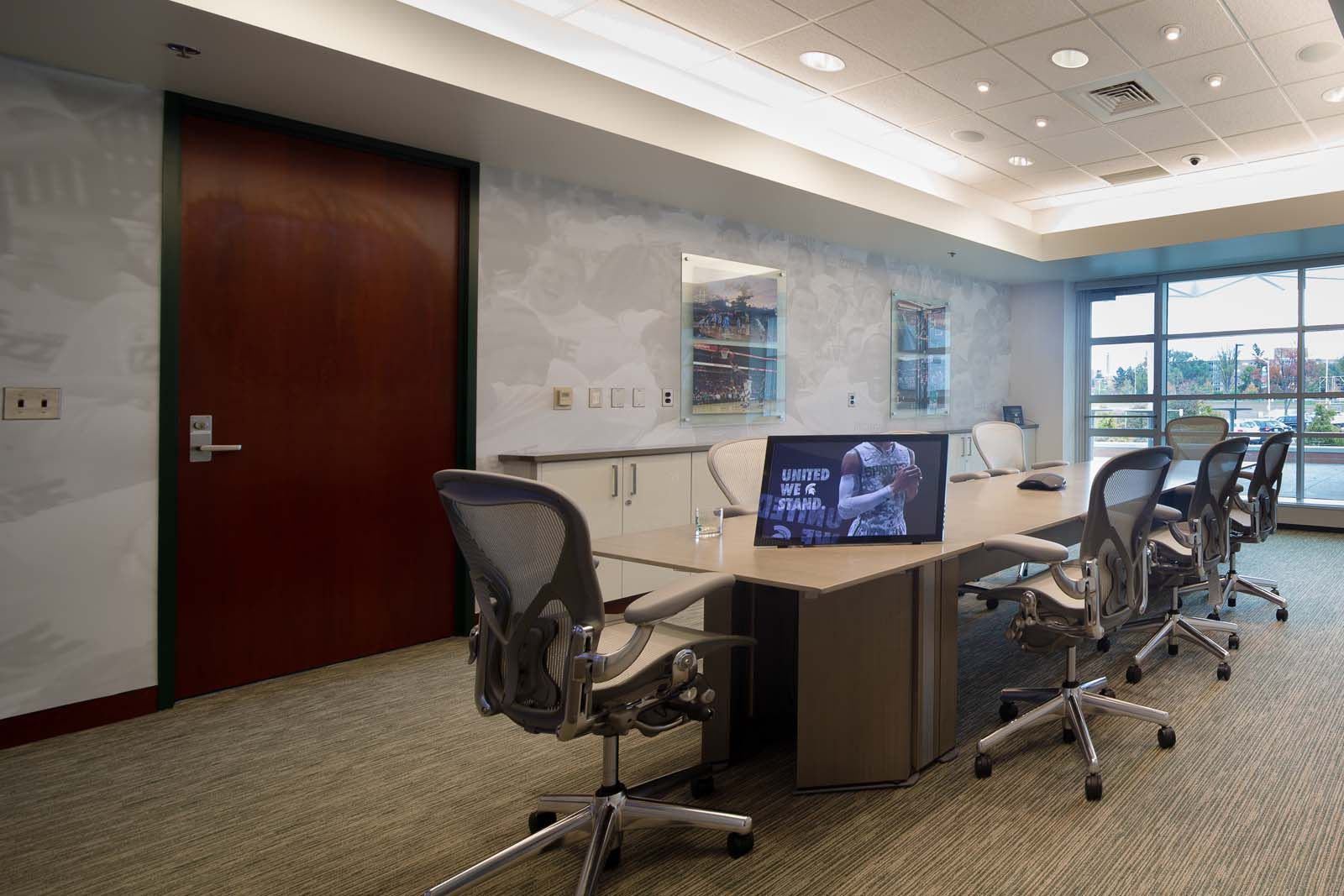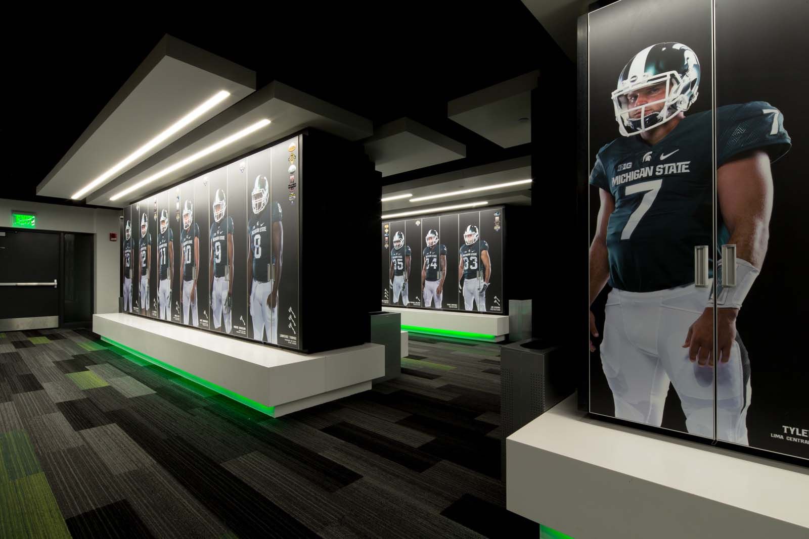 Designed to elevate Michigan State University’s recruiting efforts and player experience, this renovation reimagines the training room and practice football locker room to meet the evolving needs of coaches, staff, and student-athletes. The upgrade resolves existing spatial and circulation challenges while introducing modern amenities that reflect the high-performance nature of MSU athletics.