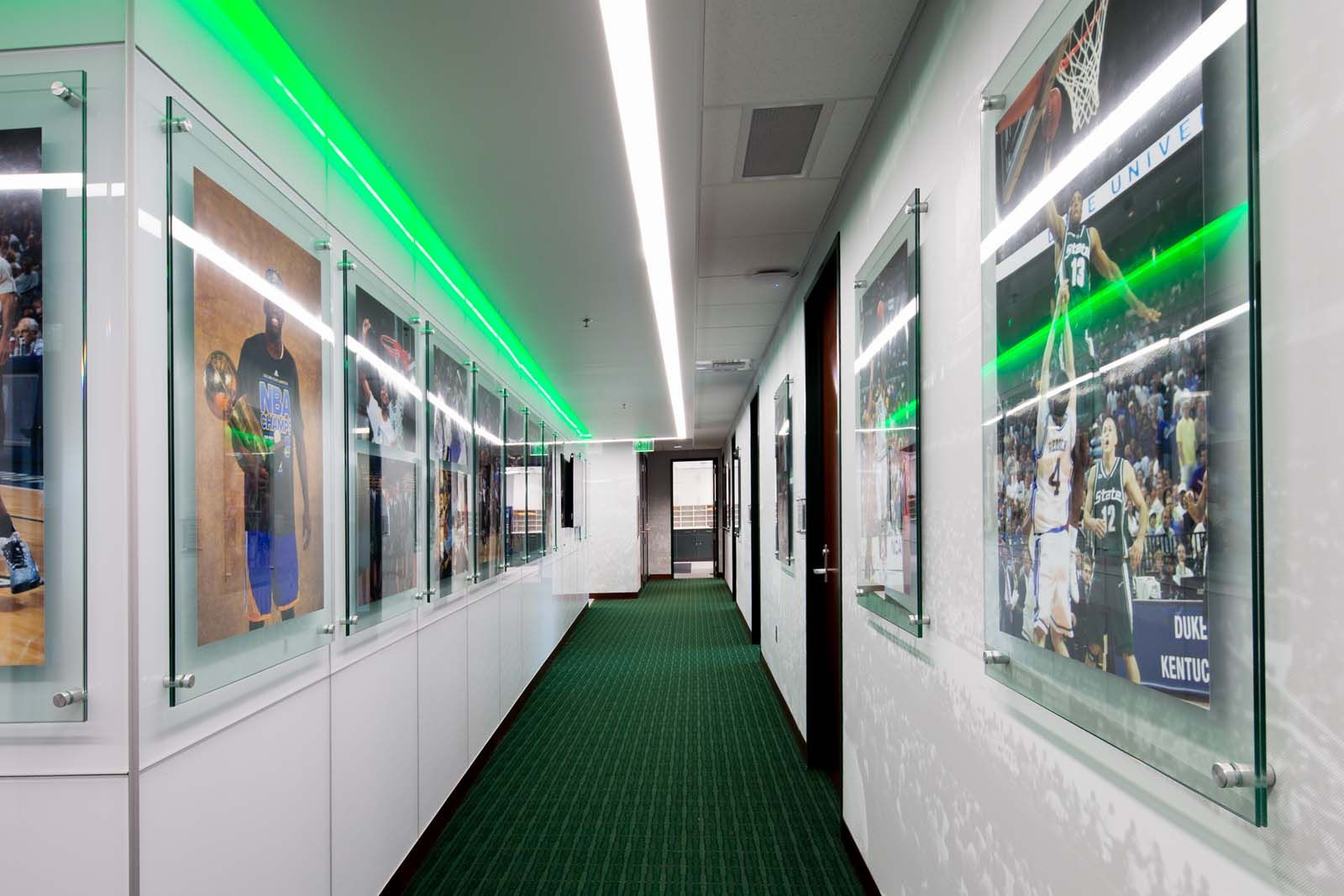 The newly designed practice locker room houses 115 player lockers, five inactive player lockers, and 120 clean laundry lockers, alongside a hydration station and a central gathering area. The design concept embraces the “speed of the game” with bold linear elements that reinforce movement and perspective. Custom graphic locker door panels, integrated mechanical ventilation, and LED-lit solid surface benches add a dynamic visual impact, creating an environment that is both functional and inspiring.
