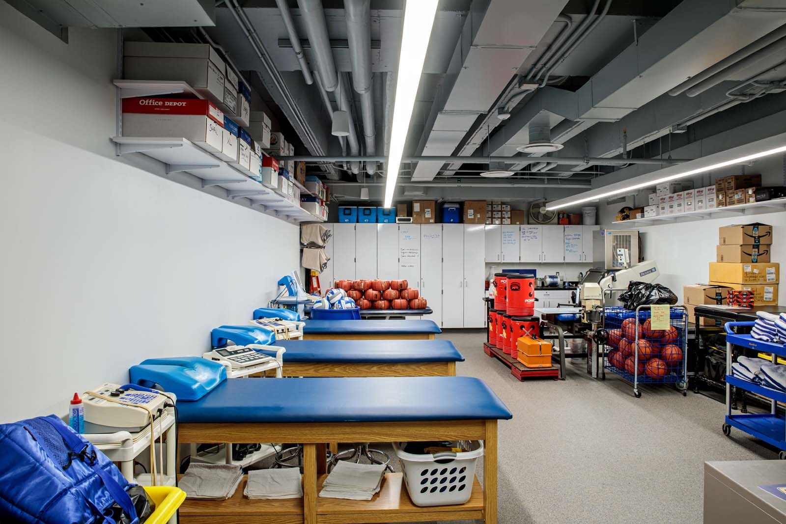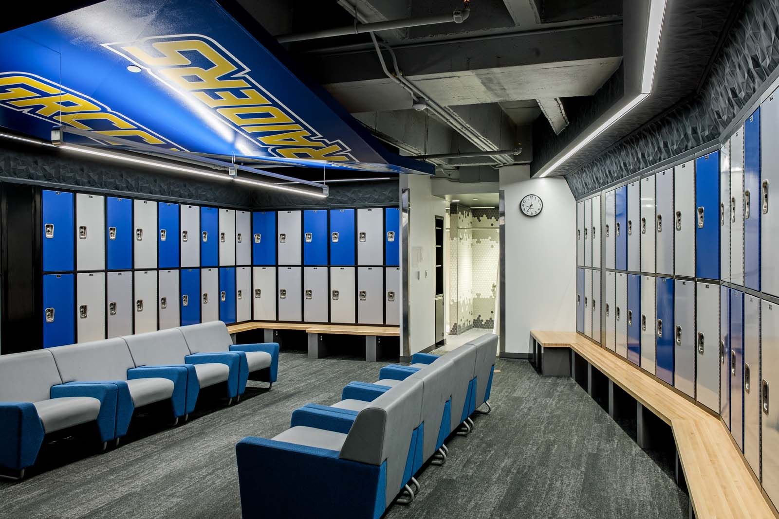 Locker room upgrades are also part of the renovation, with general-purpose locker rooms being expanded and supplemented by smaller corridor lockers in the upgraded health club area. Faculty and staff locker rooms have been redesigned with a flexible partition system, allowing them to double as visiting team locker rooms. These improvements are designed to support modern teaching methods, meet evolving student needs, and create a vibrant, welcoming space for the entire campus community.