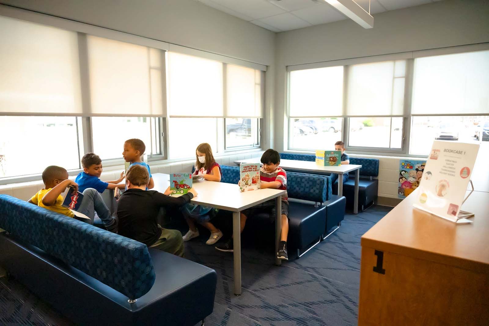 Honoring Hoover’s legacy, key architectural elements from the original building were salvaged and repurposed. The stone “Hoover Elementary” sign now welcomes guests inside the vestibule, and the historic stone archway, once the main entrance, now stands at the entry to the library and STEM classrooms. Bridging past and present, this symbolic gesture ensures that while Hoover’s spaces evolve, its spirit remains unchanged, greeting new generations of students just as it has for the past century.