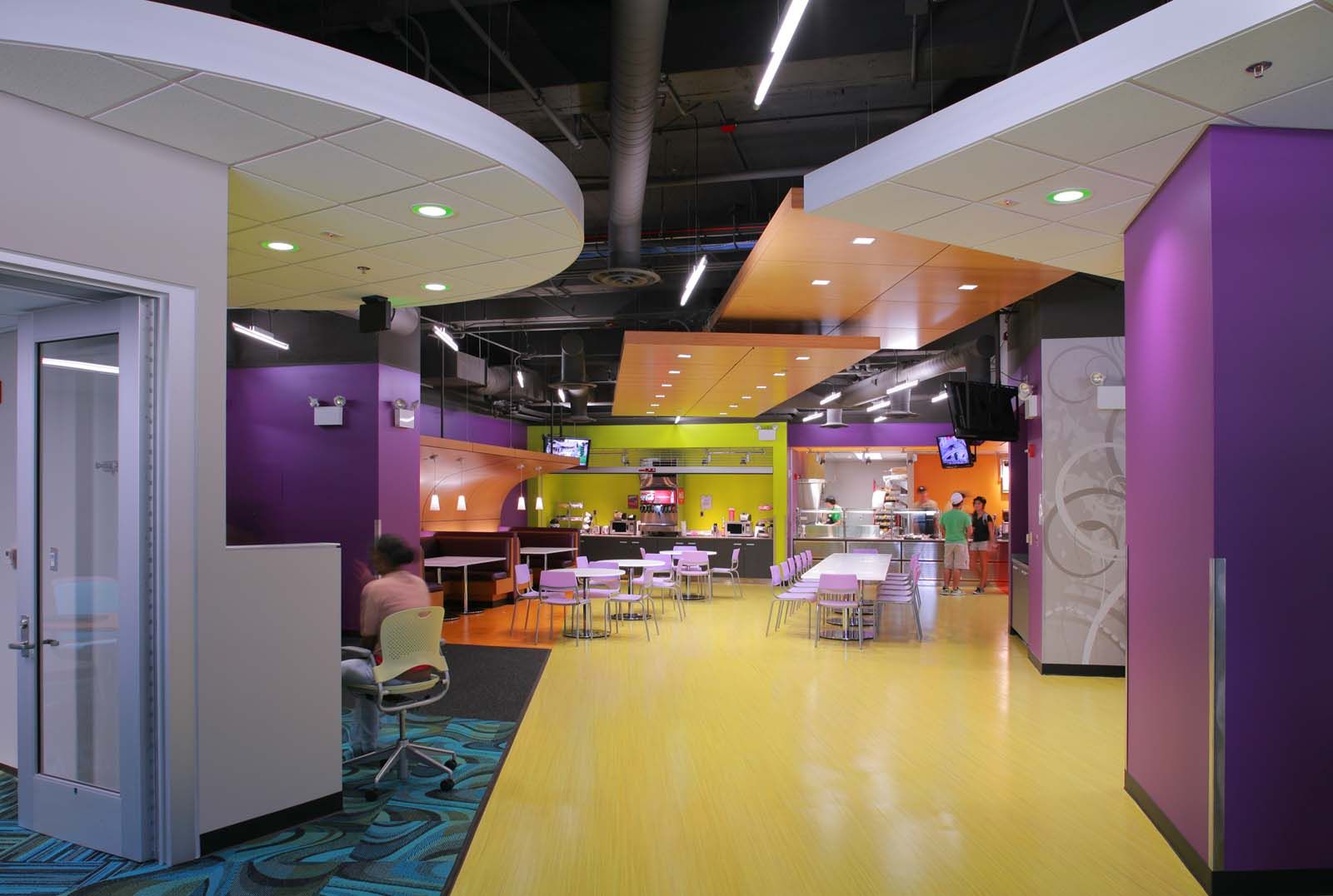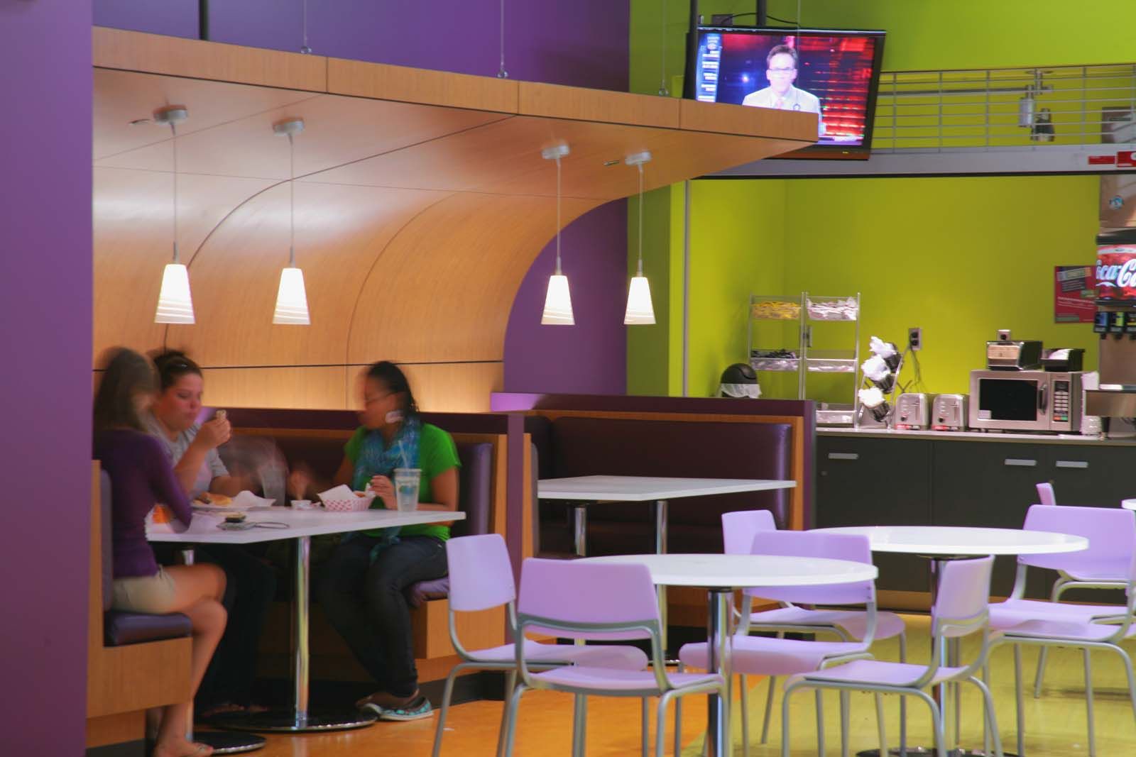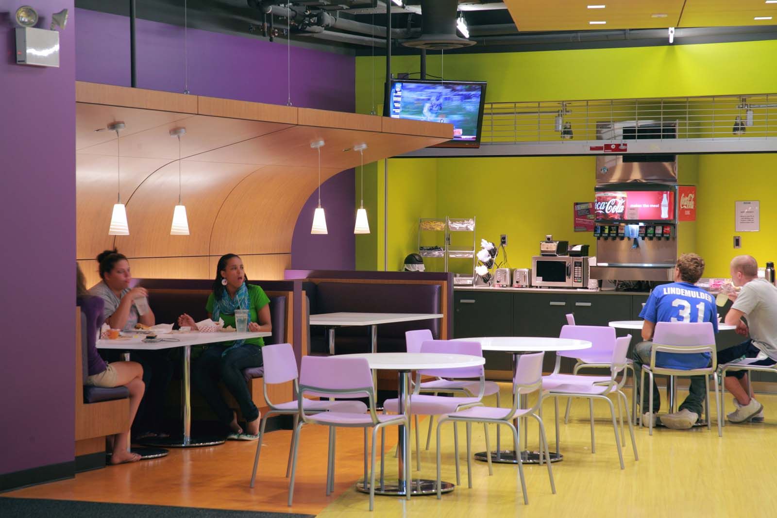 Today, these buildings feature colorful, modern materials and thoughtfully designed spaces that students want to spend time in.