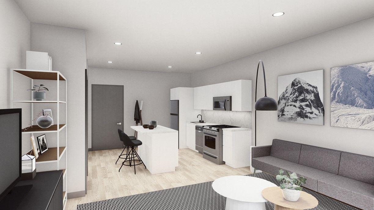 The design team was challenged with evoking a high-end and sophisticated design at a price point that was affordable enough to reach out to an inclusive group of prospective residents. The design maintains this vision largely through the constrained use of materials and colors to evoke a palette that maintains a sense of luxury and design without the premium cost.