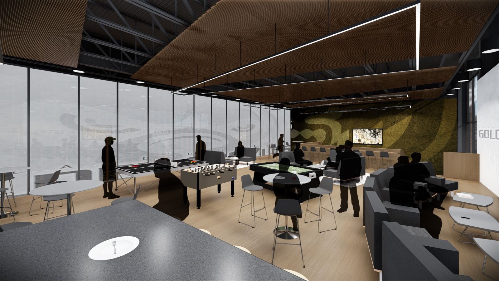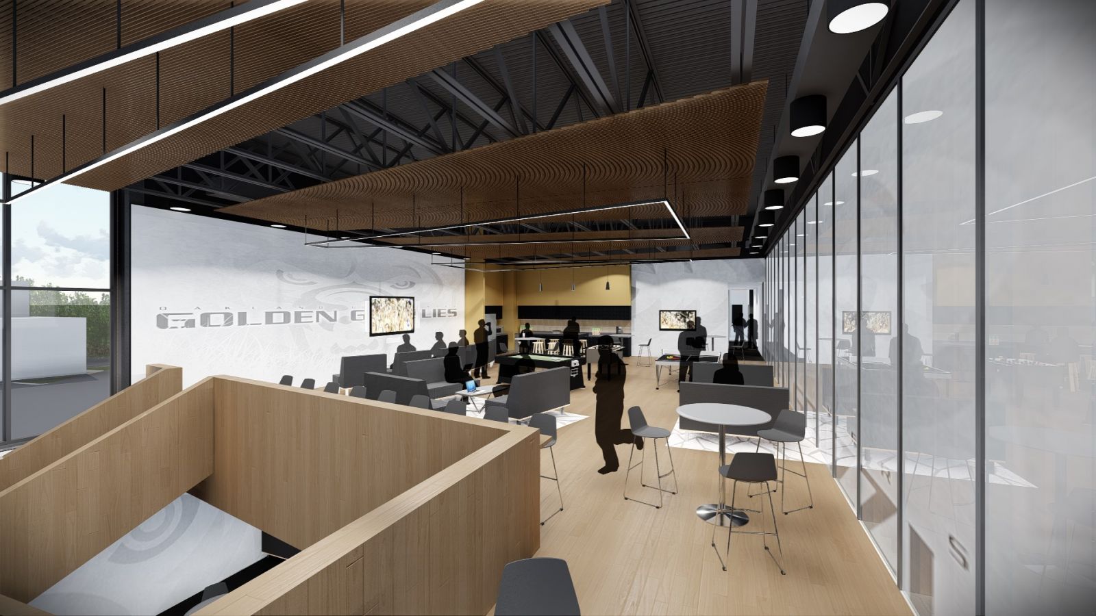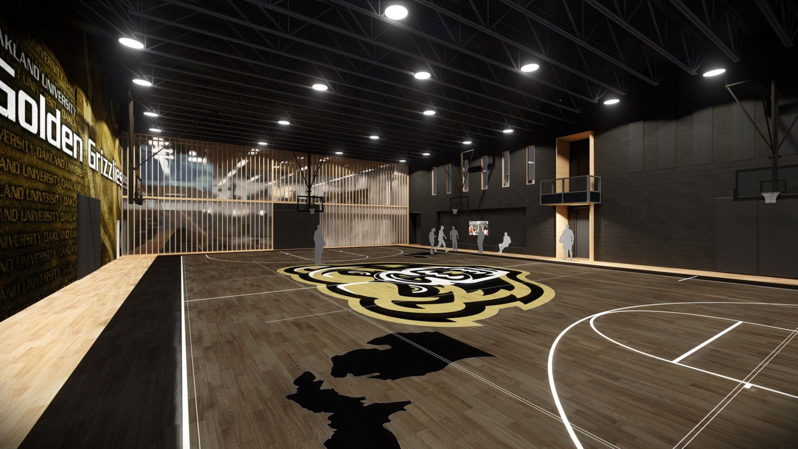 The project’s design seeks to amplify the strong sense of community among Oakland University’s athletic staff and student-athletes. The implementation of social spaces, new technologies and a seamless connection to the existing building have become the means to achieve this. Intended to be the athletic social hub, the academic activity center is stretched across two levels, connecting the existing locker rooms with the administration offices, forming both a quiet study area and group recreation space in the process. The feature stair that spans these levels acts as a communal bridge allowing for foot traffic as well as group congregation.