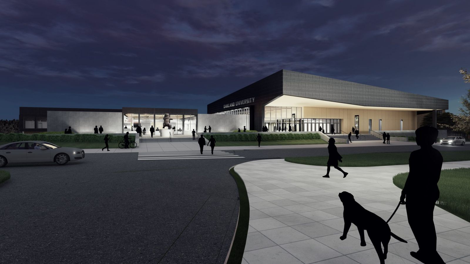 Situated within the Athletics Center / Rec Center Building, the scope of this renovation project revolves around the creation of three key spaces; a practice court, an academic activity center and a team meeting room with film viewing capabilities. These spaces, combined with administrative and infrastructural support spaces, will occupy the existing underutilized Lepley pool footprint and expand it further west to form a new exterior branding message for athletics.