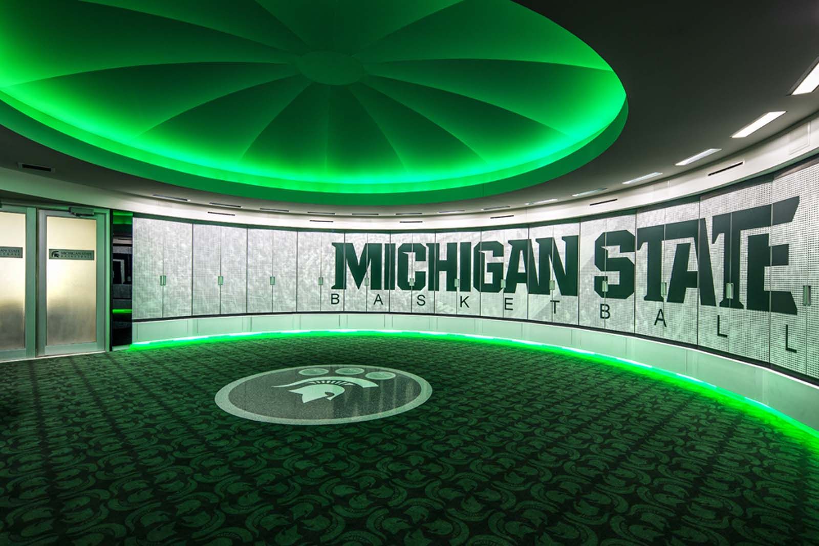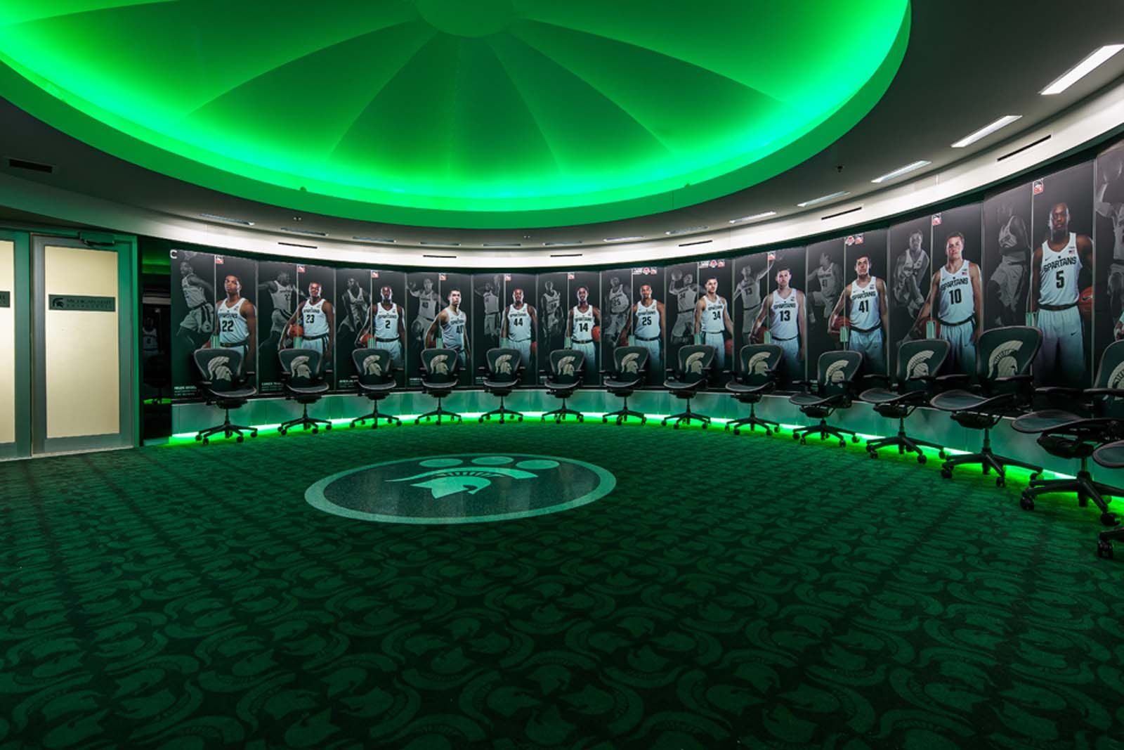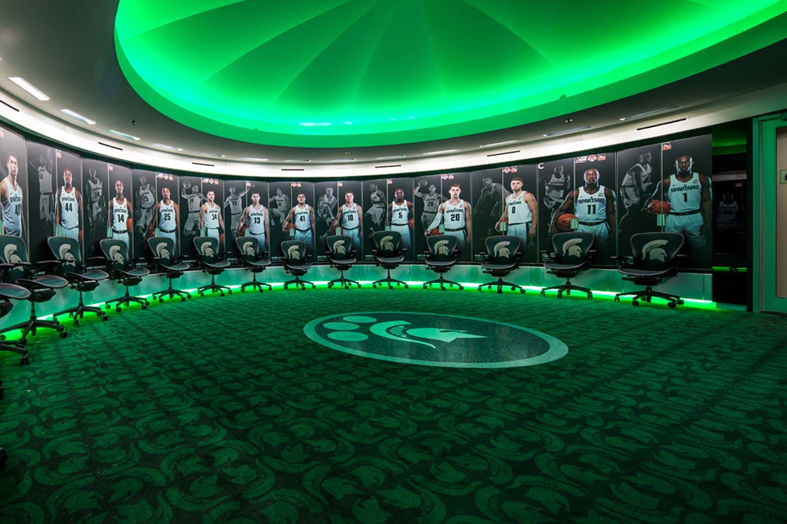 In 2007, the men’s basketball locker room at MSU was pretty standard, custom wood lockers arranged in a circular layout, with a simple whiteboard up front for Coach Izzo to sketch out plays. It got the job done, but as the years passed, the space started to feel static while the rest of the facility evolved. Enter the 2017 renovation, a complete game-changer.