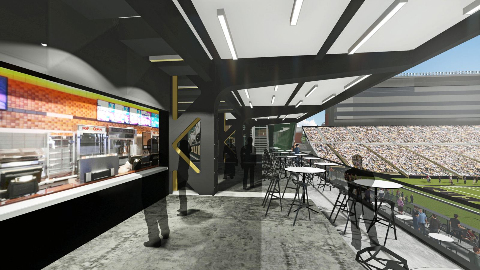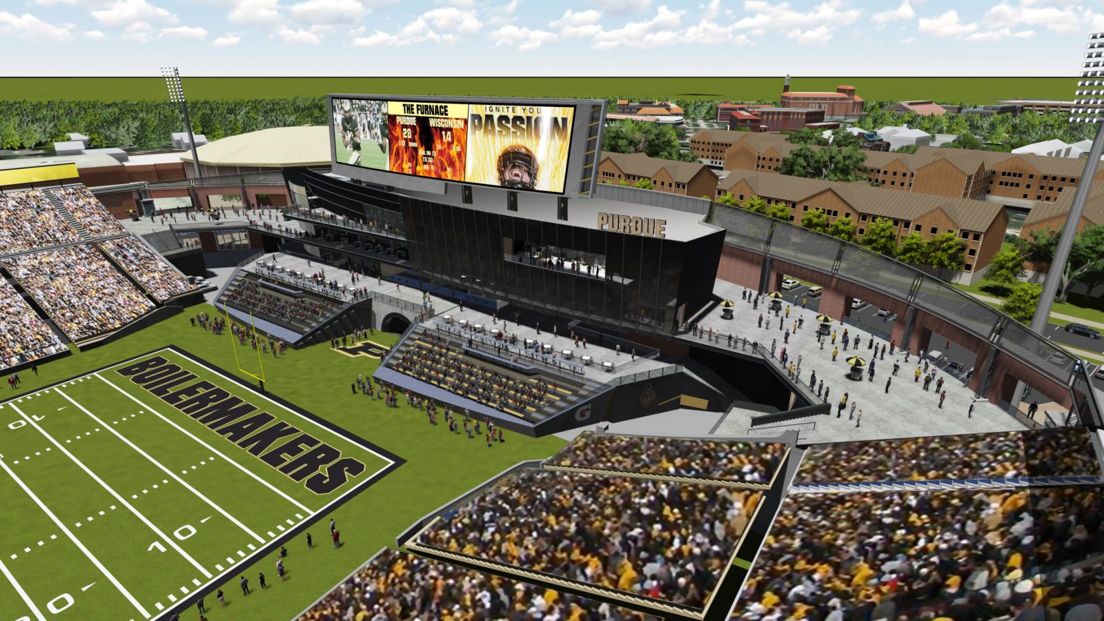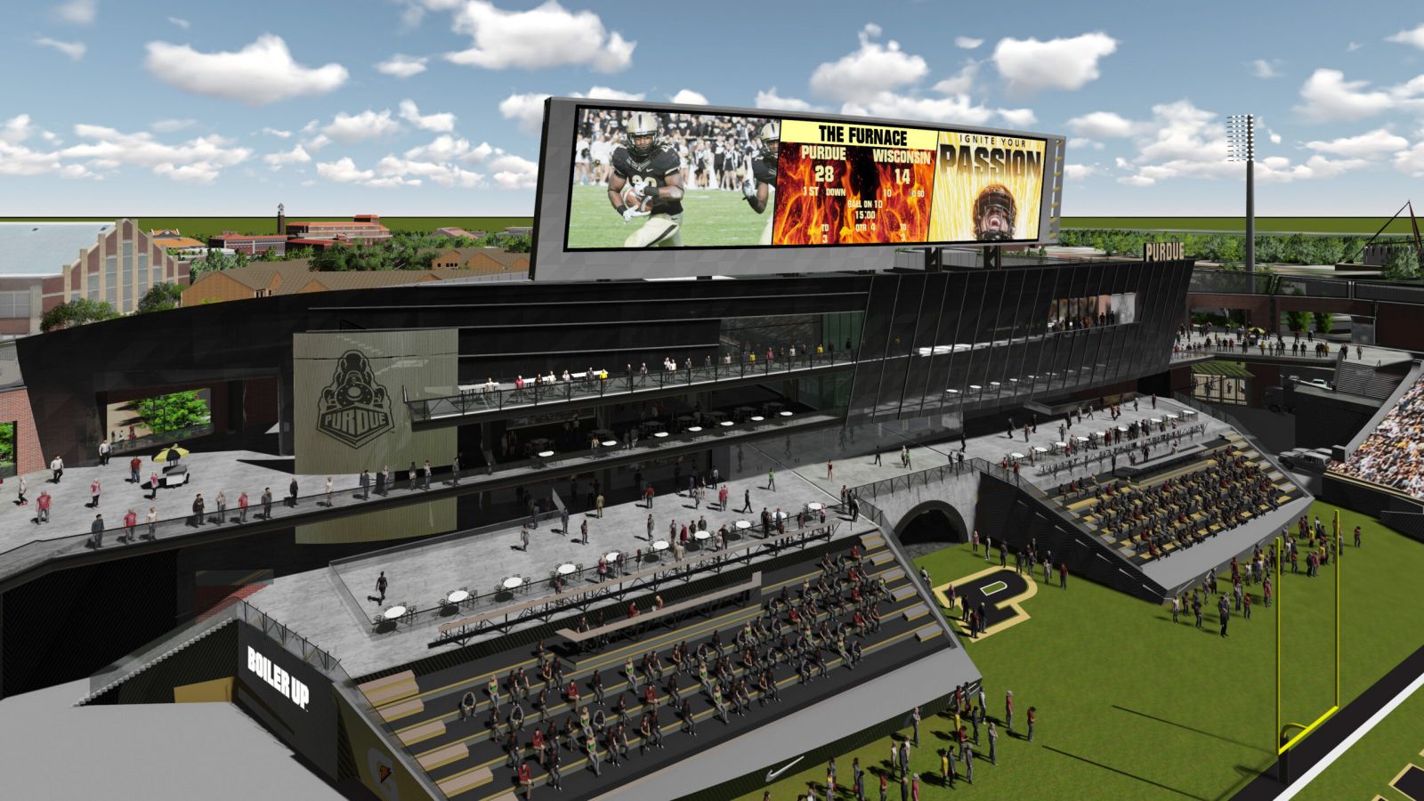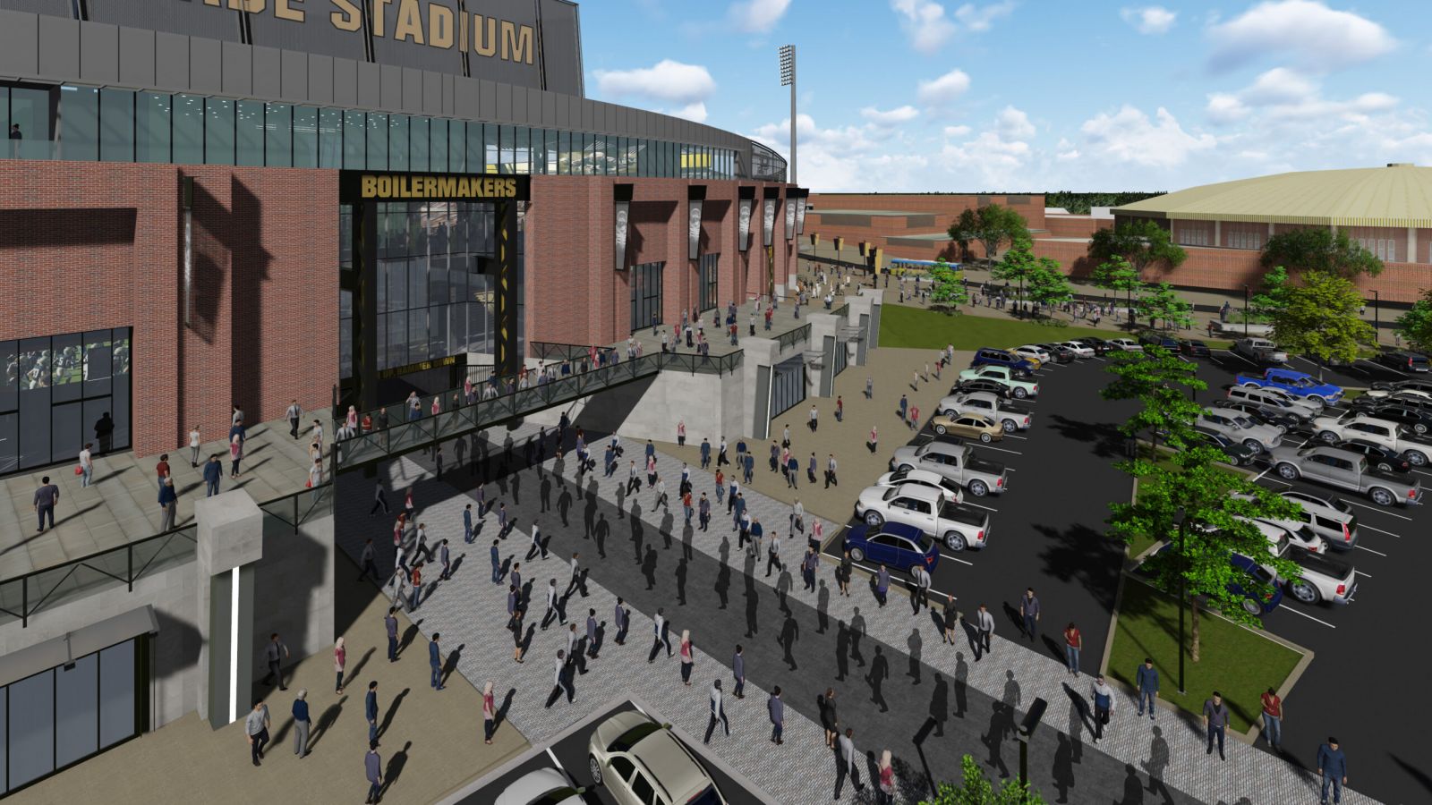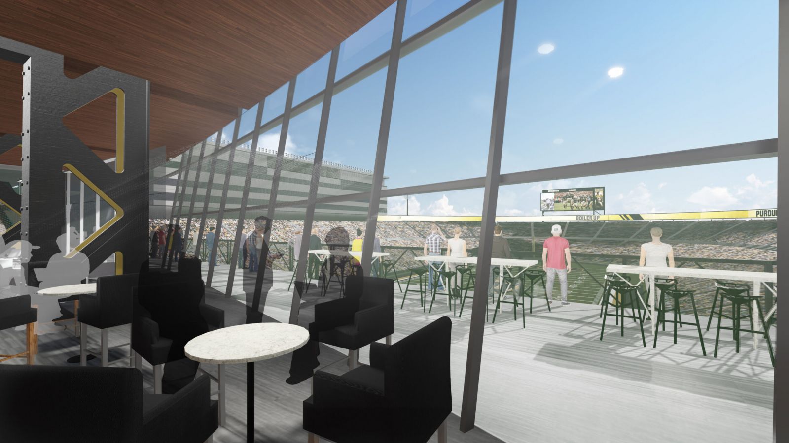 - The exterior plaza was enlarged and made more prominent to be an area “to see and be seen”, connect and socialize with other Boilermaker fans.