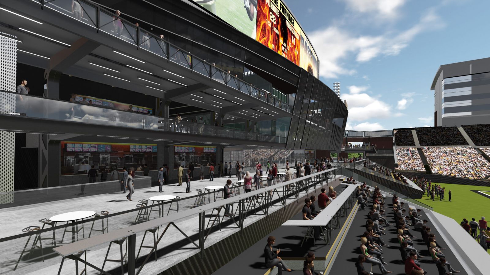 - Connectivity is a prominent design concept: fans to each other, patrons to amenities and stadium features, patrons back to campus and recruits to fans and the game-day experience.