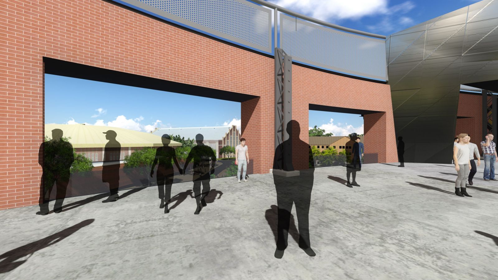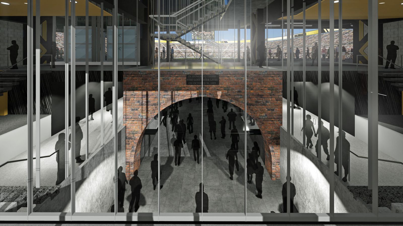 - The pathway into the stadium is ceremonial and celebrates the procession of the players, band members, and fans.