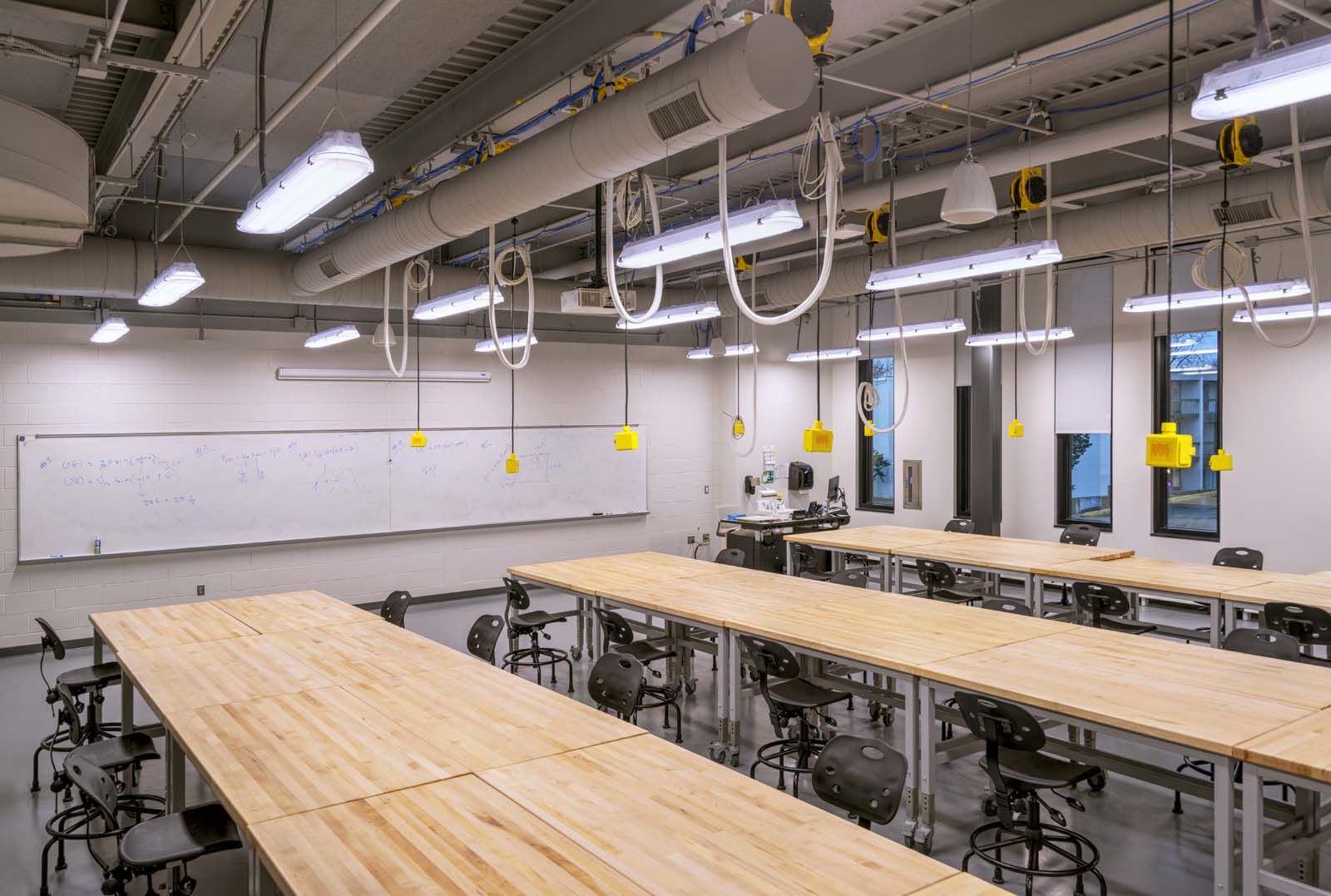 The reconfigured facility prioritizes adaptability, ensuring that new classrooms and teaching labs can accommodate a range of engineering disciplines. Each lab is designed for maximum flexibility while still supporting specialized activities such as circuit soldering and fluid dynamics experiments. This forward-thinking approach allows the space to grow alongside expanding academic programs, ensuring long-term relevance and functionality.