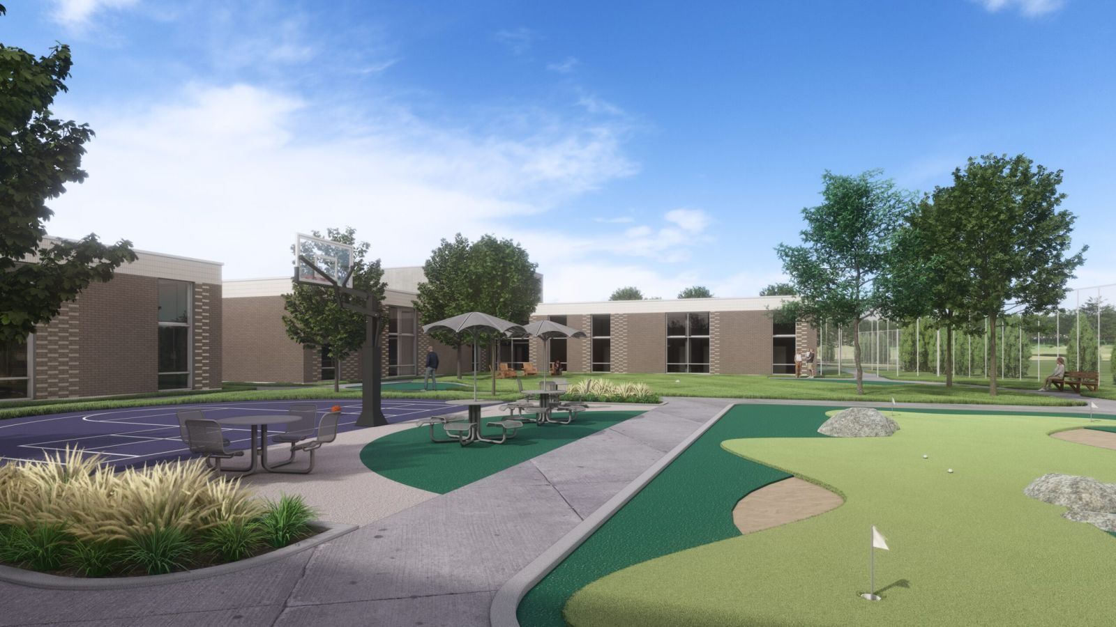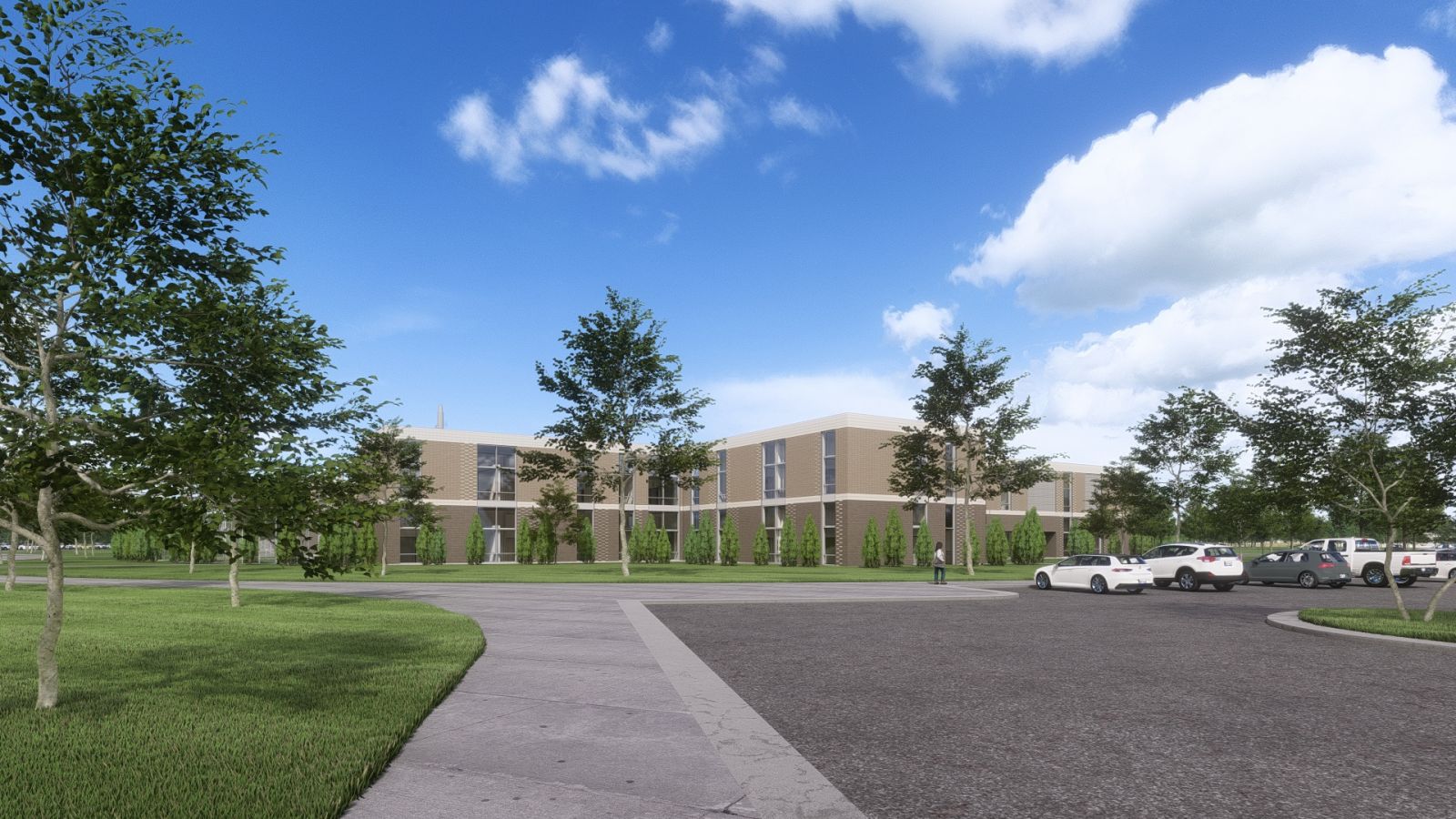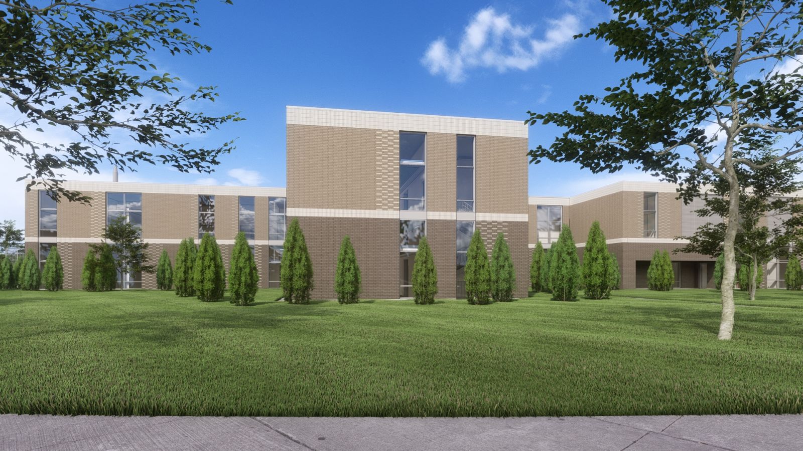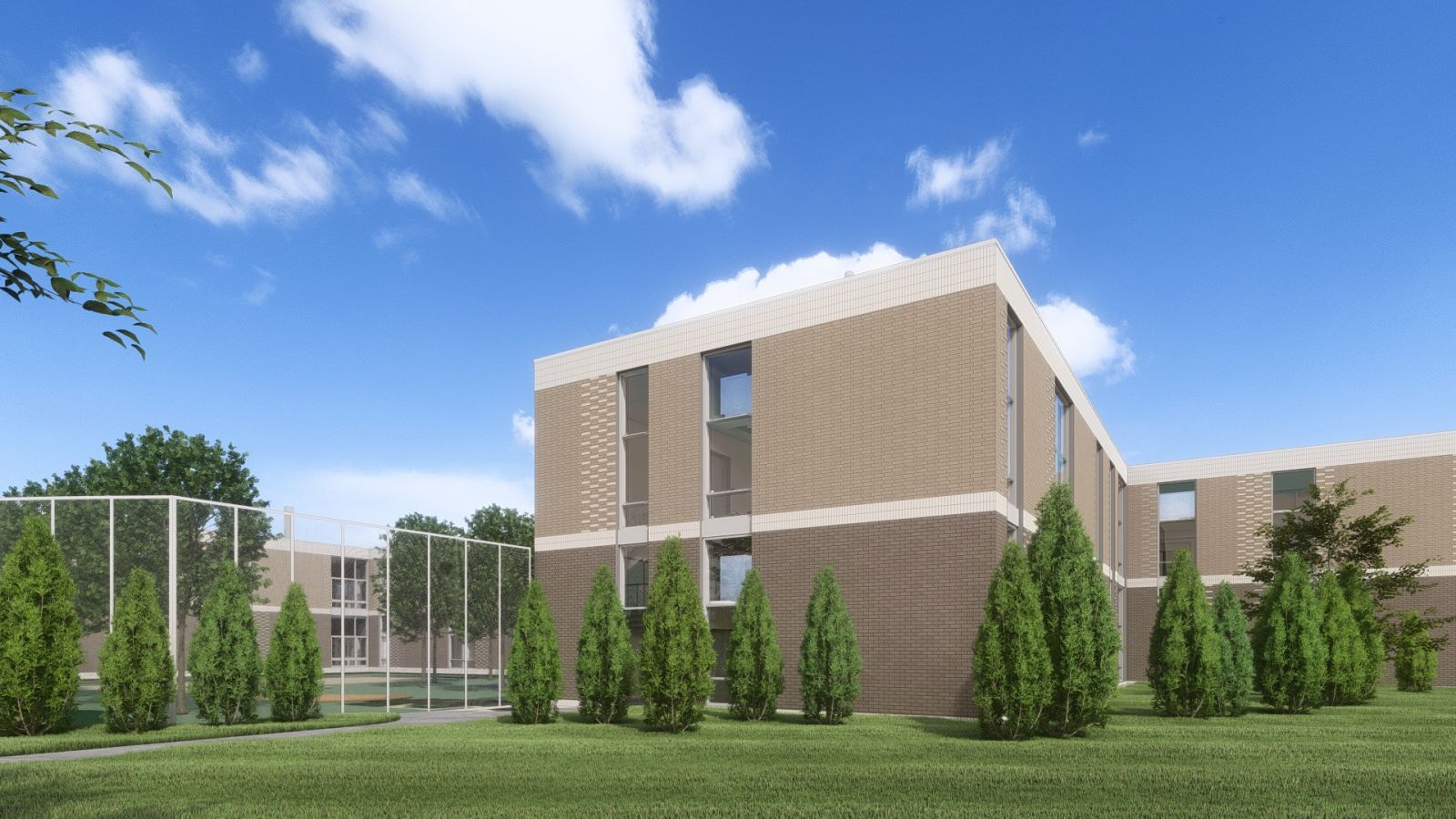 This project is targeting a LEED Gold level design. One of the State’s largest geothermal fields, including over 350 bores at a depth of 500 feet, will serve the facility. Building siting and orientation maximizes solar access to interior courtyards. Strategic brick relief and coloring achieves an asymmetrical appearance while maintaining efficiently stacked façade elements.
