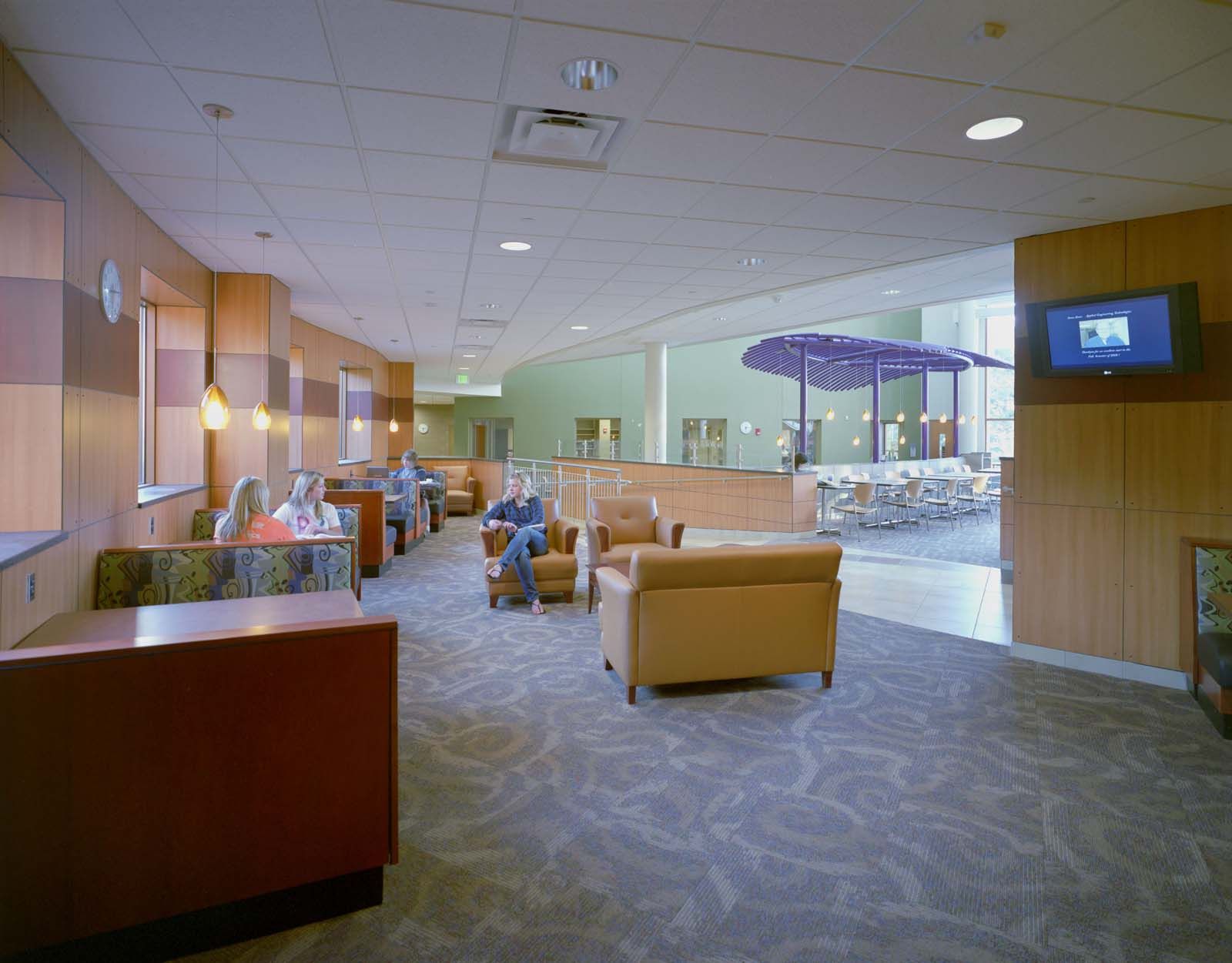 Oakland Community College’s Auburn Hills campus sought to create a dynamic Student Services Center that would attract, engage, and retain students by providing a welcoming space for them to connect between classes. With over 6,000 commuters daily, the campus lacked a central hub where students could socialize, study, and build a sense of community.