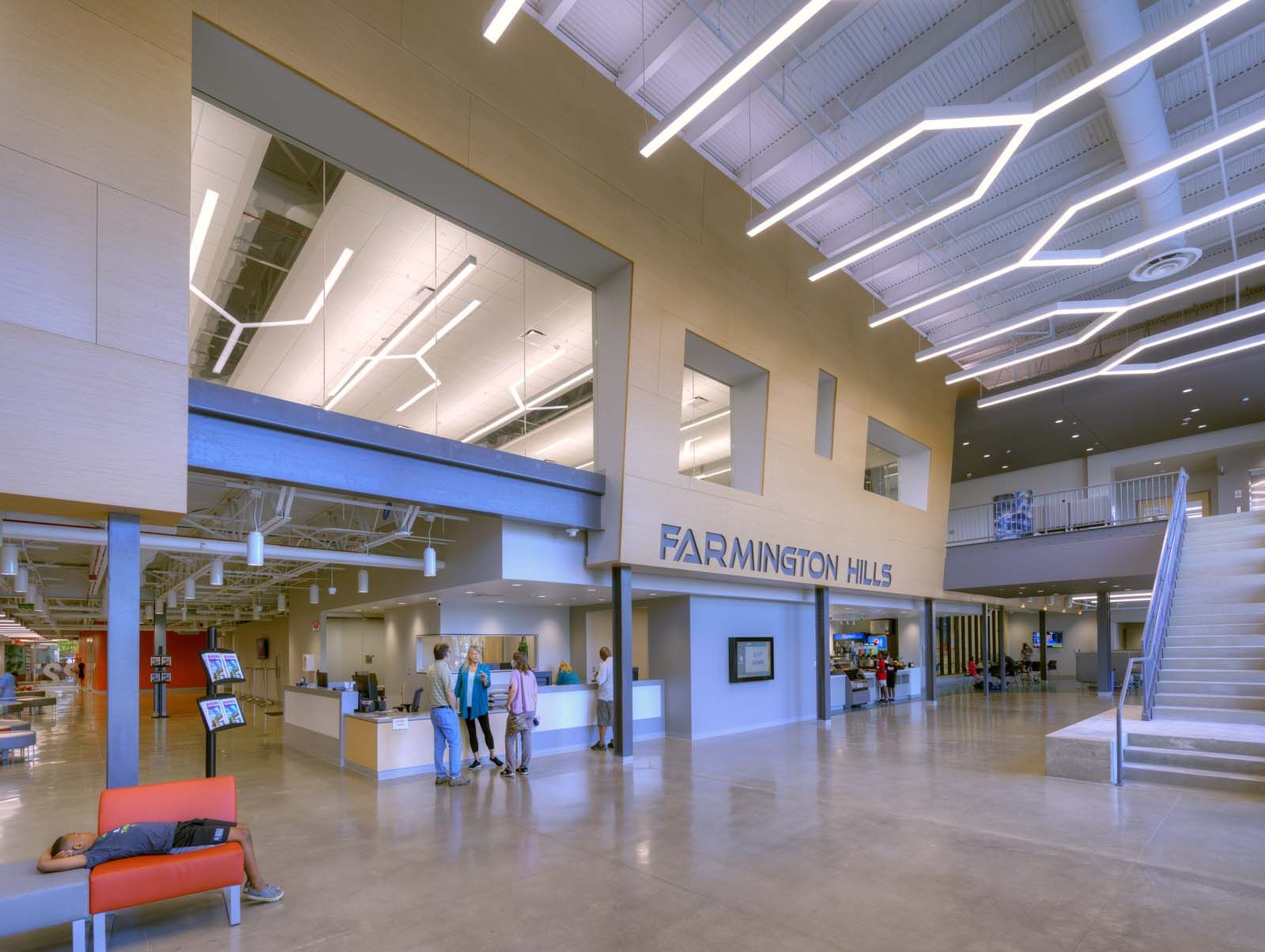 In fall 2018, the City of Farmington Hills acquired Harrison High School with a vision to transform it into a dynamic new Community Center. To shape the project’s direction, IDS led a series of community engagement sessions, gathering input from over four hundred residents. The priorities were clear: retain and enhance existing sports and gym facilities, introduce new recreational features like a community pool, and honor the legacy of the beloved high school.