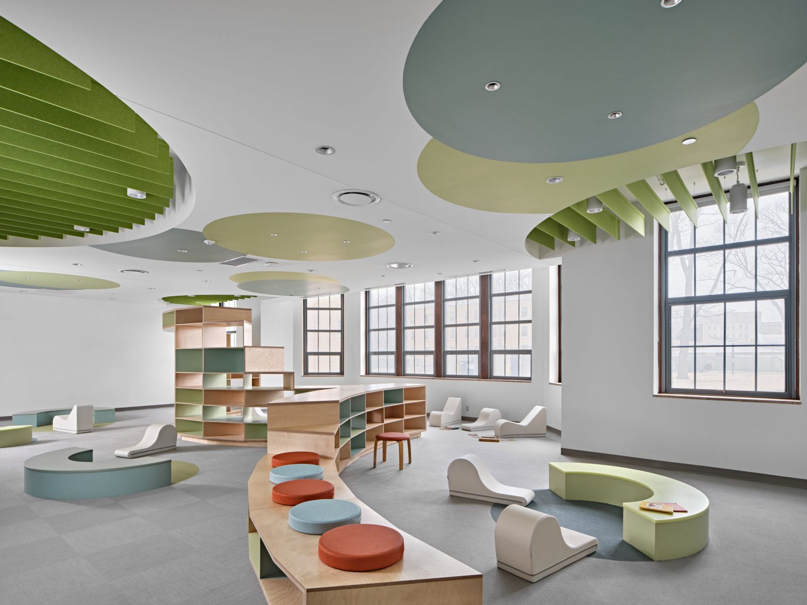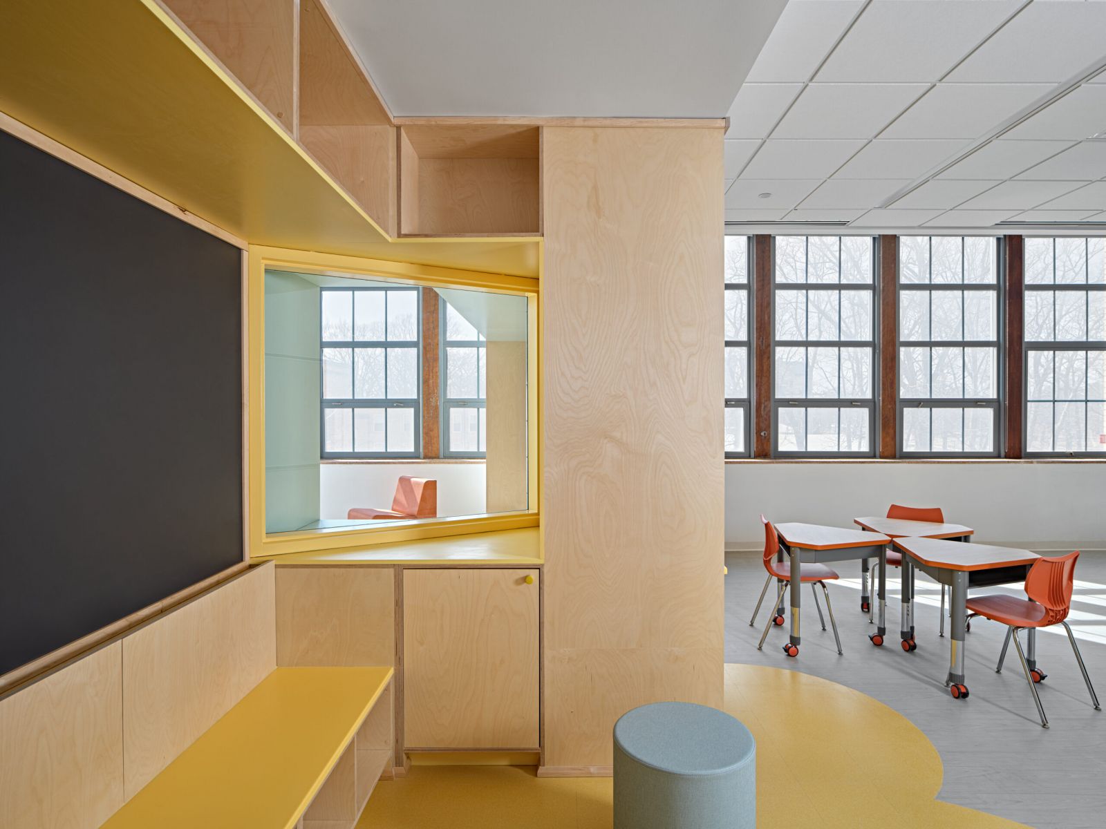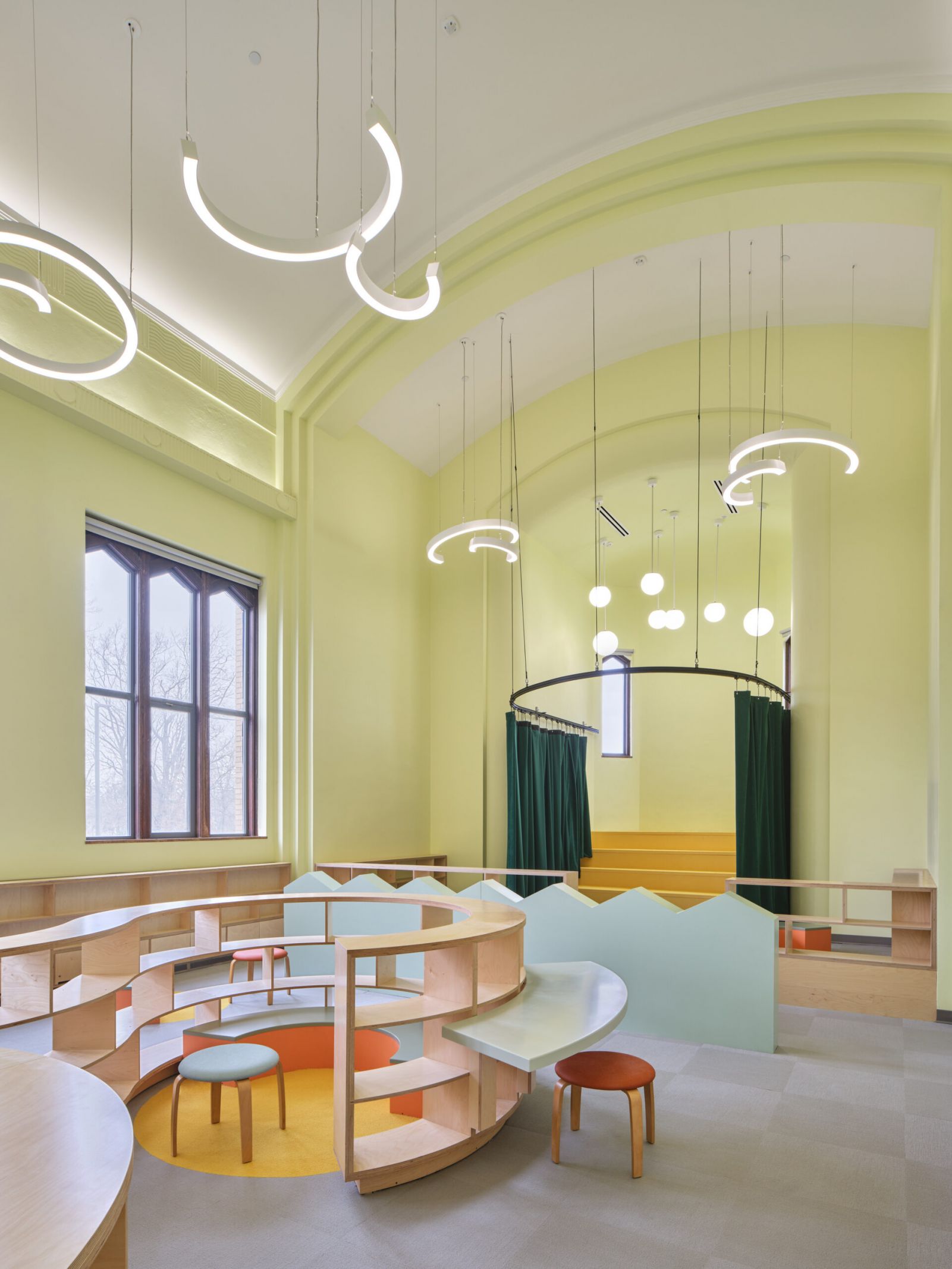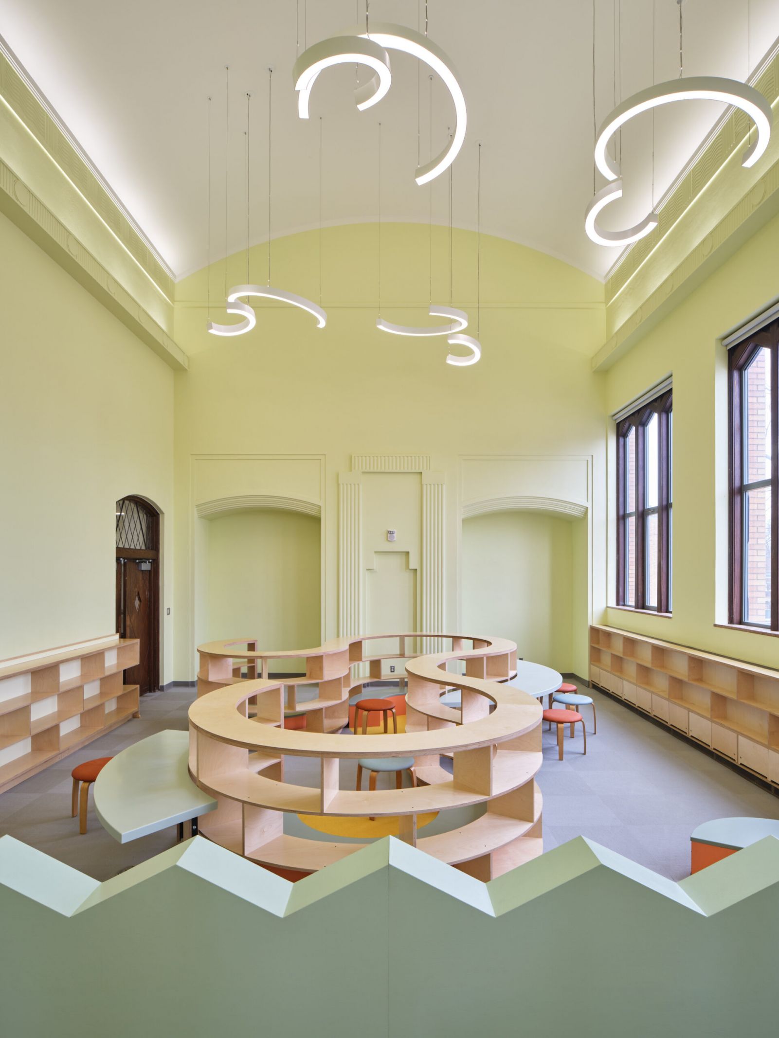 The Liberal Arts Building, a Neo-Gothic structure, served grades 6-12 and became central to the P-20 educational vision. The redesigned facility included specialized learning labs, fostering a collaborative and innovative learning environment. The campus also provided shared amenities such as a dining hall, library, fitness rooms, makerspaces, and social spaces to support academic, social, and personal growth. Through these efforts, the Marygrove Campus evolved into a dynamic, multi-generational learning community that honored its historic past while shaping the future of education in Detroit.